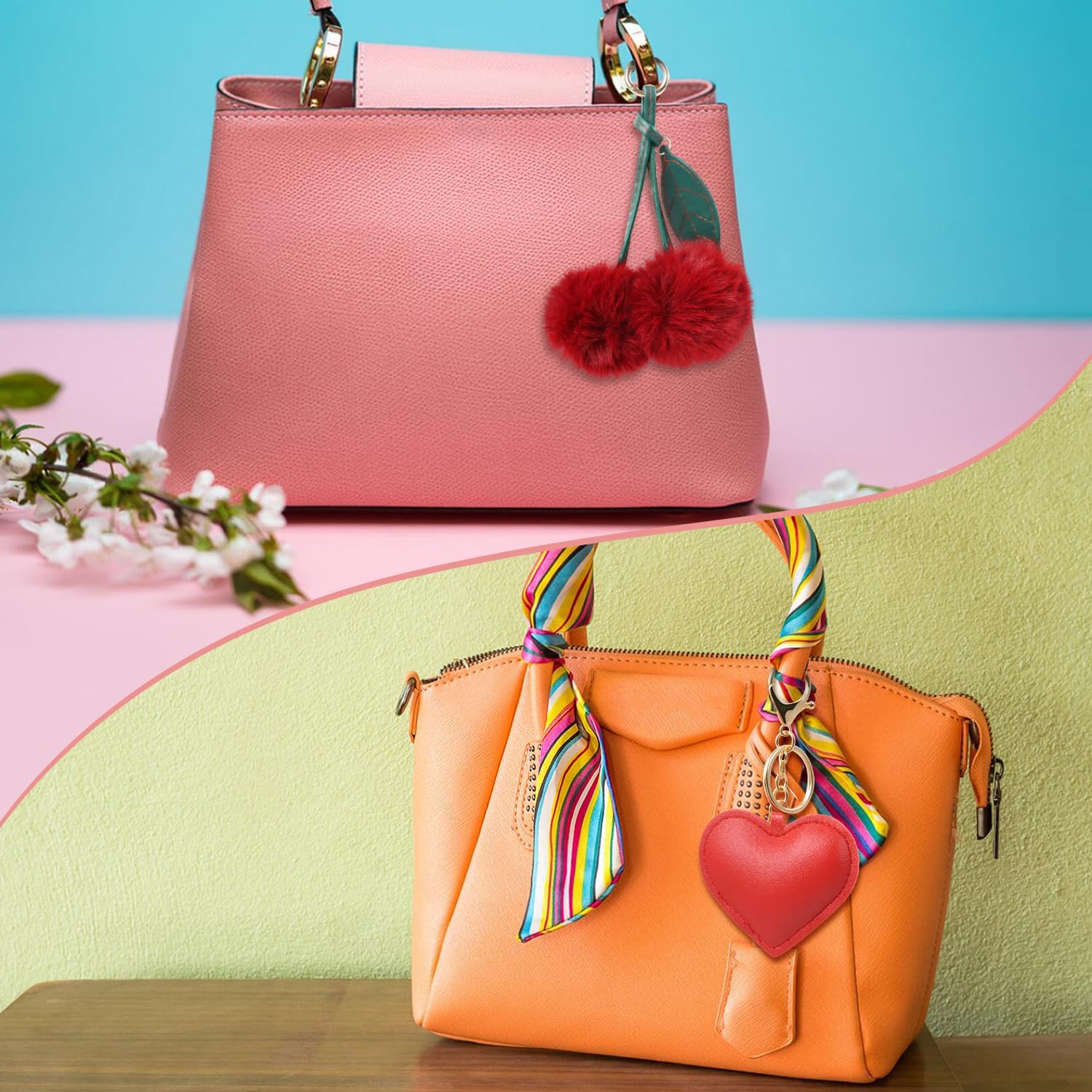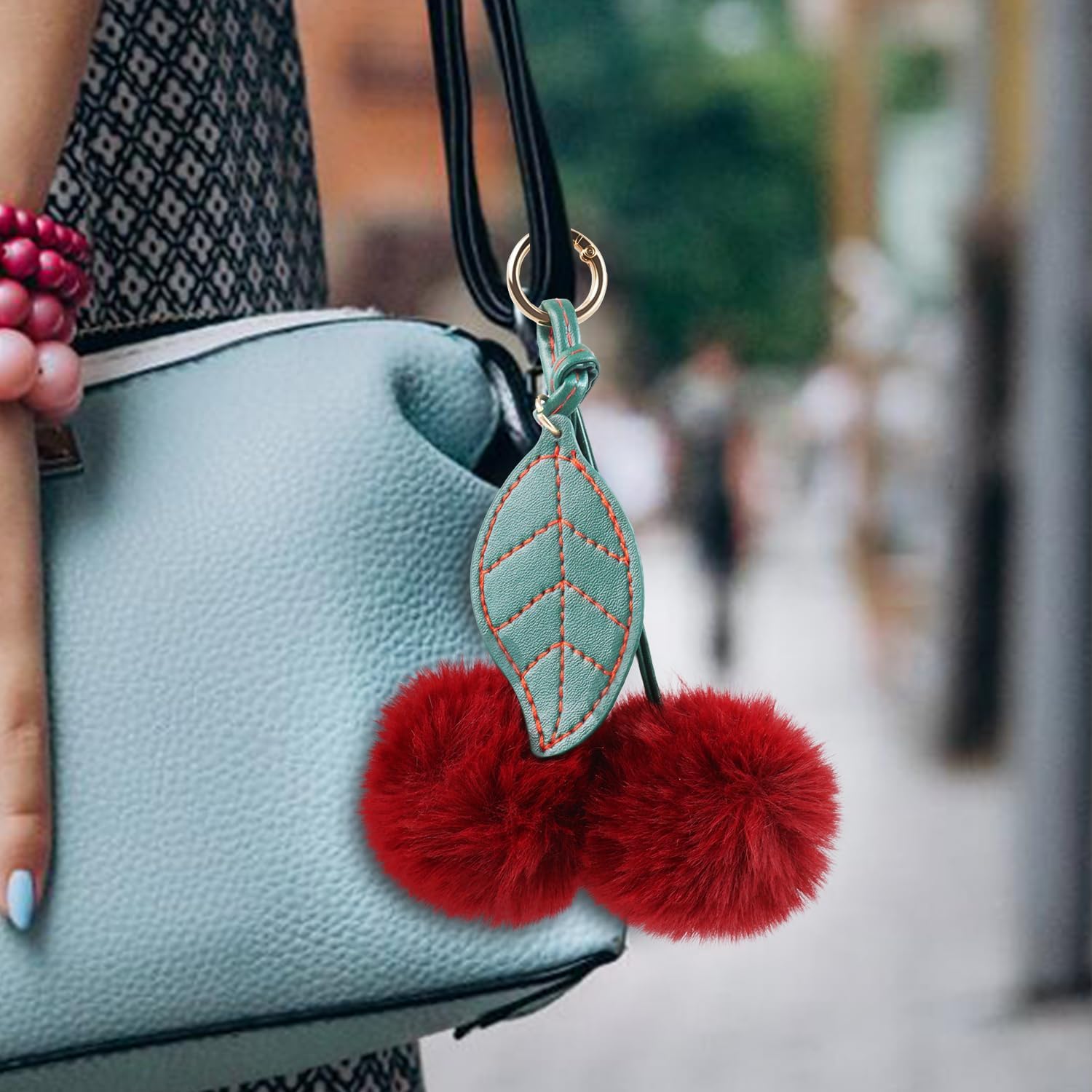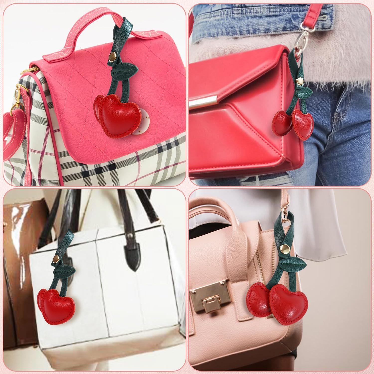 cherry charm is made of shiny resin with a vintage cool cherry pattern. Clip it to your bag or keys for a fresh style. Made of high quality zinc alloy, this cherry keychain is carefully designed and polished for smooth lines, fine workmanship and easy opening and closing. The top half of this Cherry charm is made of anti-allergenic premium steel with a gold baked enamel finish for a high-end, rich look, and underneath is a pair of high-quality resin cherries with a delicate shimmering golden glow.