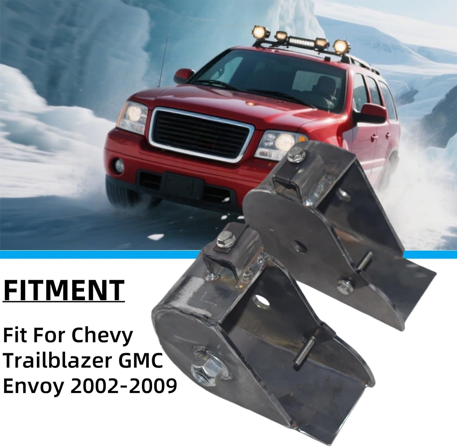 Fitment: For Chevy Trailblazer GMC Envoy 2002-2009 Description: This kit includes the parts to repair the rusted away rear upper frame mounts on a chevy trailblazer/gmc envoy. An experienced welder/fabricator will need to install the mounts and bending and fitting is required to make them work. Enhanced Suspension Performance: By providing a secure mounting point for the upper trailing arm, this kit helps to prevent wear and maintain proper alignment and ensuring smooth suspension movement. 100% high quality. Unique charm, wear-resisting durable and undamage. Easy to install. No need for assembly welding Package Include: 2 Pack Upper Trailing Arm Mounts As shown in the picture