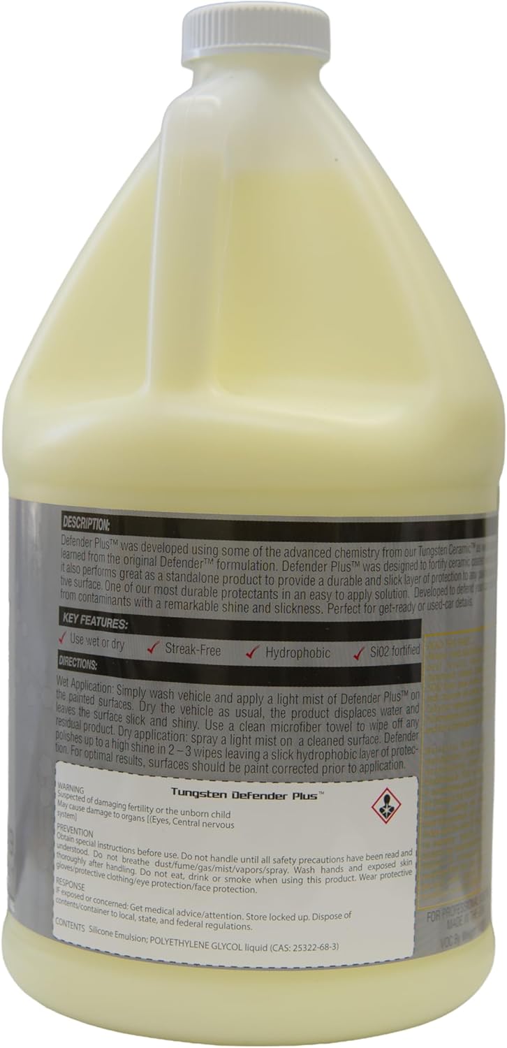 Defender+, a durable and easy-to-apply protectant, was engineered using advanced Tungsten SiO2 technology. It fortifies SiO2-coated vehicles and provides a long-lasting, slick layer of protection for any painted automotive surface. This protectant defends against contaminants, leaving behind a remarkable shine and smooth finish, featuring excellent hydrophobic properties.