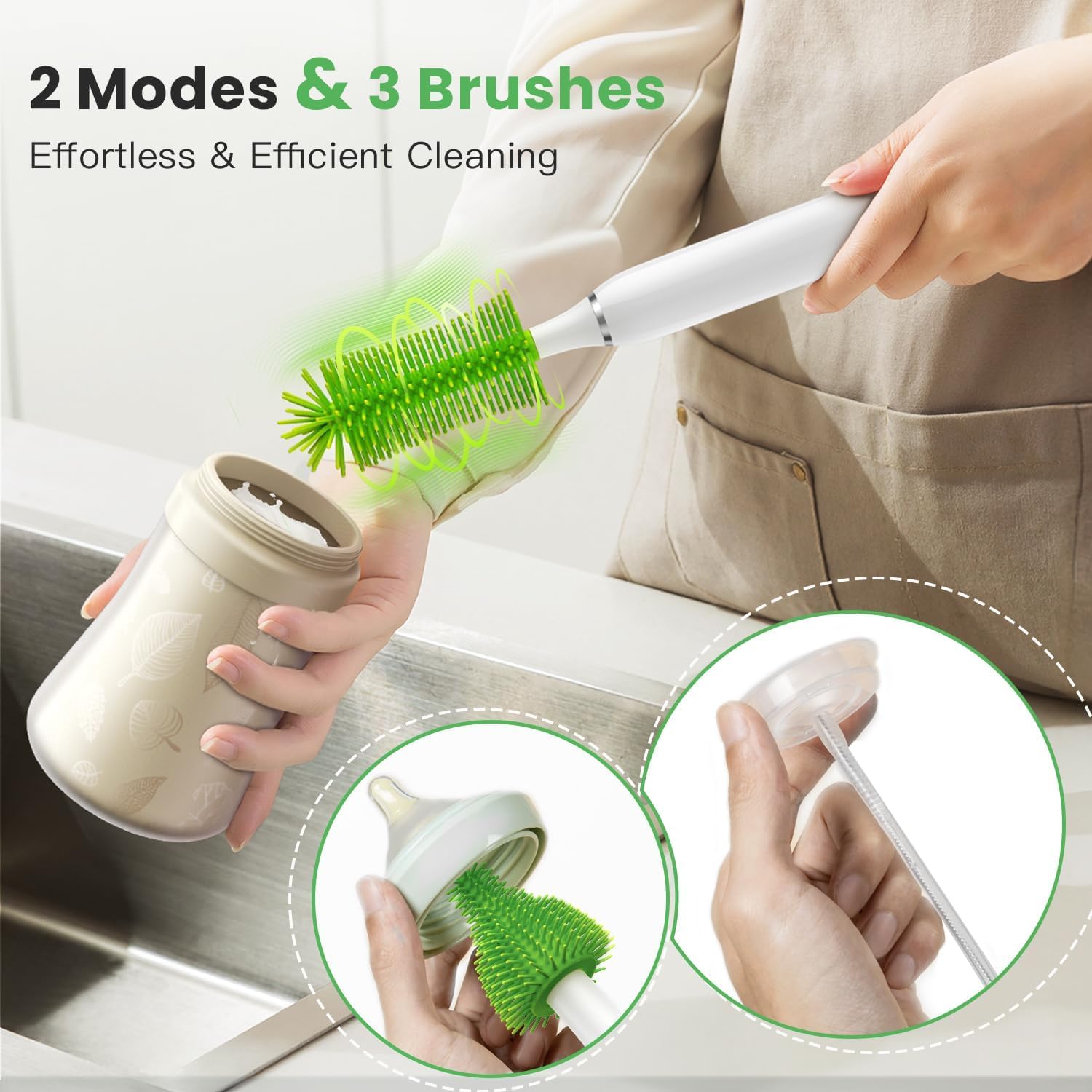 Bestidy Electric Baby Bottle Cleaner Kit for Travel- Rechargeable 360° Rotation Electric Baby Bottle Brush with Replaceable Nipple/Straw Brush, 2-Speed Modes, 50ml Lotion Bottle & Storage Bag, Green