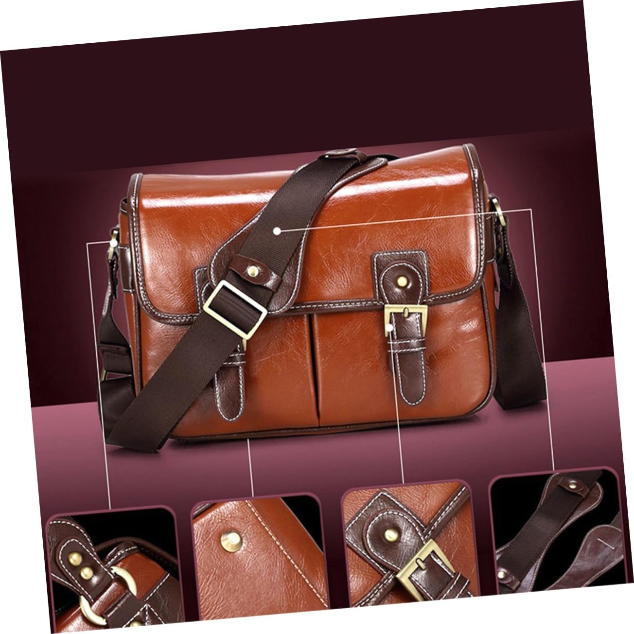 Package List 1 * Multi-function PU Leather Waterproof DSLR Camera Bag Shoulder Messenger Bag Outdoor Portable Photography Video Pouch for Travelling Hiking Mountaineering Camping - Size L (Red Brown) Characteristics - Material: PU leather Pouch. - Color: Red Brown Vedio Camera Bag. - Size: Approx. 32.5 * 14 * 24cm/ 13 * 5.5 * 9.4 inch (L*W*H). - Removable, adjustable inner divider to hold camera more sturdy, take out the liner, and also can use as a leisure bag Camera Bag. - for photography lovers for short trips, hiking, mountaineering and camping DSLR Bag. Waterproof Camera Bag - Wear resistant, waterproof and resistant camera bag with soft, strong and durable texture for comfortable carry Camera Pouch. - Outer button-down pockets design, can storage your business cards, phone, wallet, and some small Article.Goods DescriptionVedio Camera Bag It's for photography lovers for short trips, hiking, mountaineering and camping.Camera Pouch You can also take out the liner which also can use as a leisure bag.Camera Bag This item is manufactured with PU Leather material which let this camera bag looks more fashion and durable. DSLR Bag This removable, adjustable inner divider can hold camera more sturdy