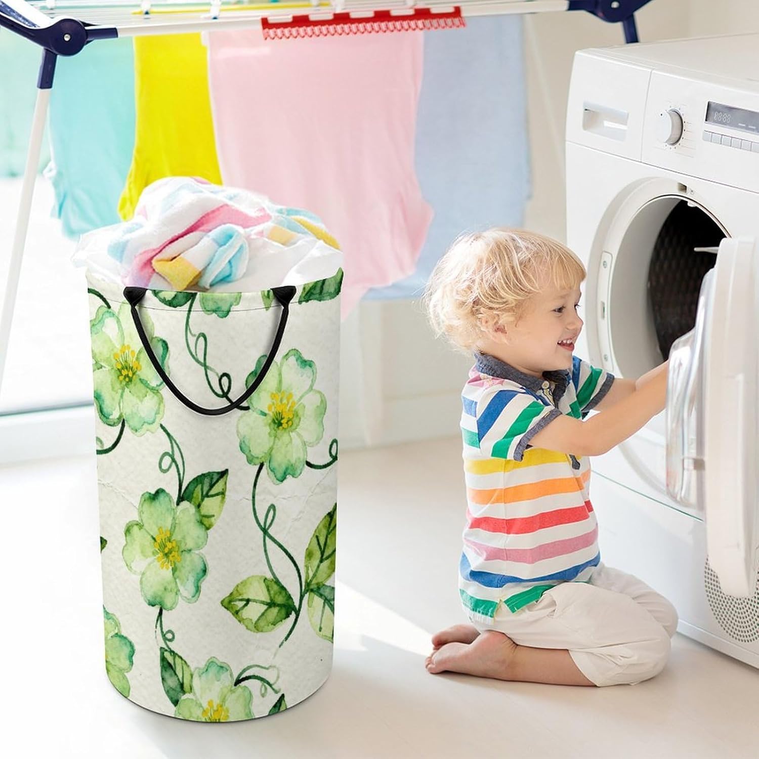 The pattern of the Floral Print Green hamper is printed with exquisite patterns, which makes the product more attractive.Chic design allows it to be used in the living room to hold throw blanket, pillows, and reading materials, as well as in the bathroom for towels, or as a laundry hamper.The laundry hamper adopted collapsible design, equipped with handles. It is lightweight and portable for using, storing, and moving conveniently.Floral Print Green Clothes hamper is suitable to store dirty clothes washing, place in the room to store toys, and other household goods, keep the house clean and tidy. Perfect laundry hamper for home, office, closet organizer, bedroom, bathroom, college dorm, etc.Gets out of your way when you need it to. This storage basket or laundry hamper is a good gift, which not only meets everyday storage needs but also carries deep care and love, a perfect way to turn thoughtfulness into warmth.