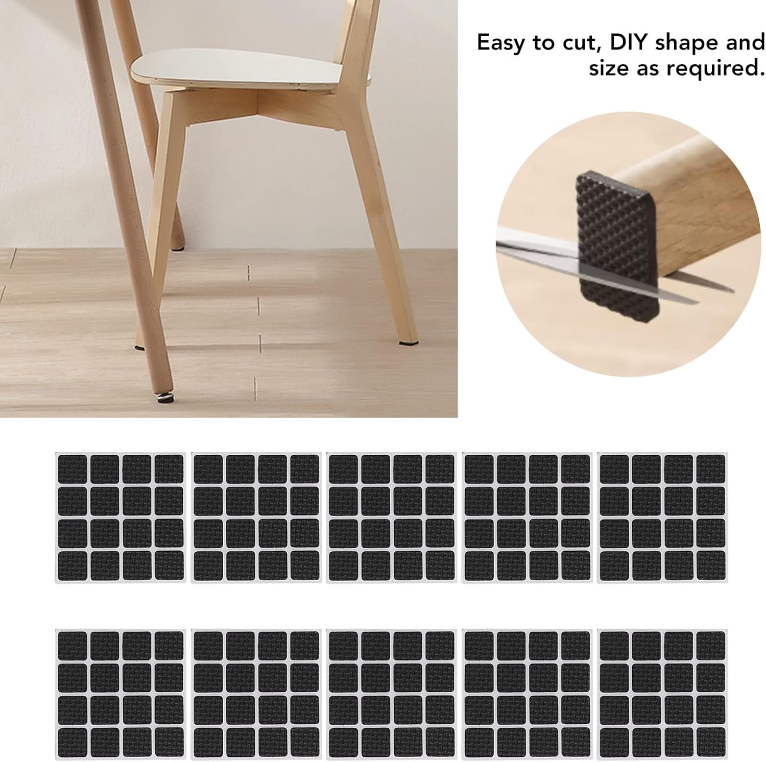 1. Floor protector: stick the non-slip furniture pad on the furniture leg and chair leg to protect the wooden floor, prevent scratches and reduce noise. It is a perfect floor protector for furniture. 2. Extensive Use The non-slip pad is applied to various types of floors, such as linoleum, laminate, ceramic tile, carpet, wood floors, etc. These floor protectors apply to all kinds of furniture, such as sofas, beds, tables and chair, refrigerator, coat rack, wardrobe, bookcase, etc. 3. CONVENIENT PADS - Furniture pads are easy to cut. You can DIY the shape or size you want according to your needs. The strong adhesive edge helps to firmly fix the non-slip furniture mat on the bottom of the furniture leg, which is very convenient to use. 4. NO MORE SLIPPING - The furniture floor pad allows you to no longer worry about scratches. Not to prevent slipping, but also to experience smoother sliding when moving furniture. 5. Including 160 pieces: there are 10 sheets, and each sheet has 16 pieces, the total quantity of 160 pieces furniture pads will meet your various needs. Specification: Item Type:Furniture Pad Material: PVAProduct specification: 16 pieces in one sheet, 10 sheets in total. Packing List: 160 xFurniture Pad