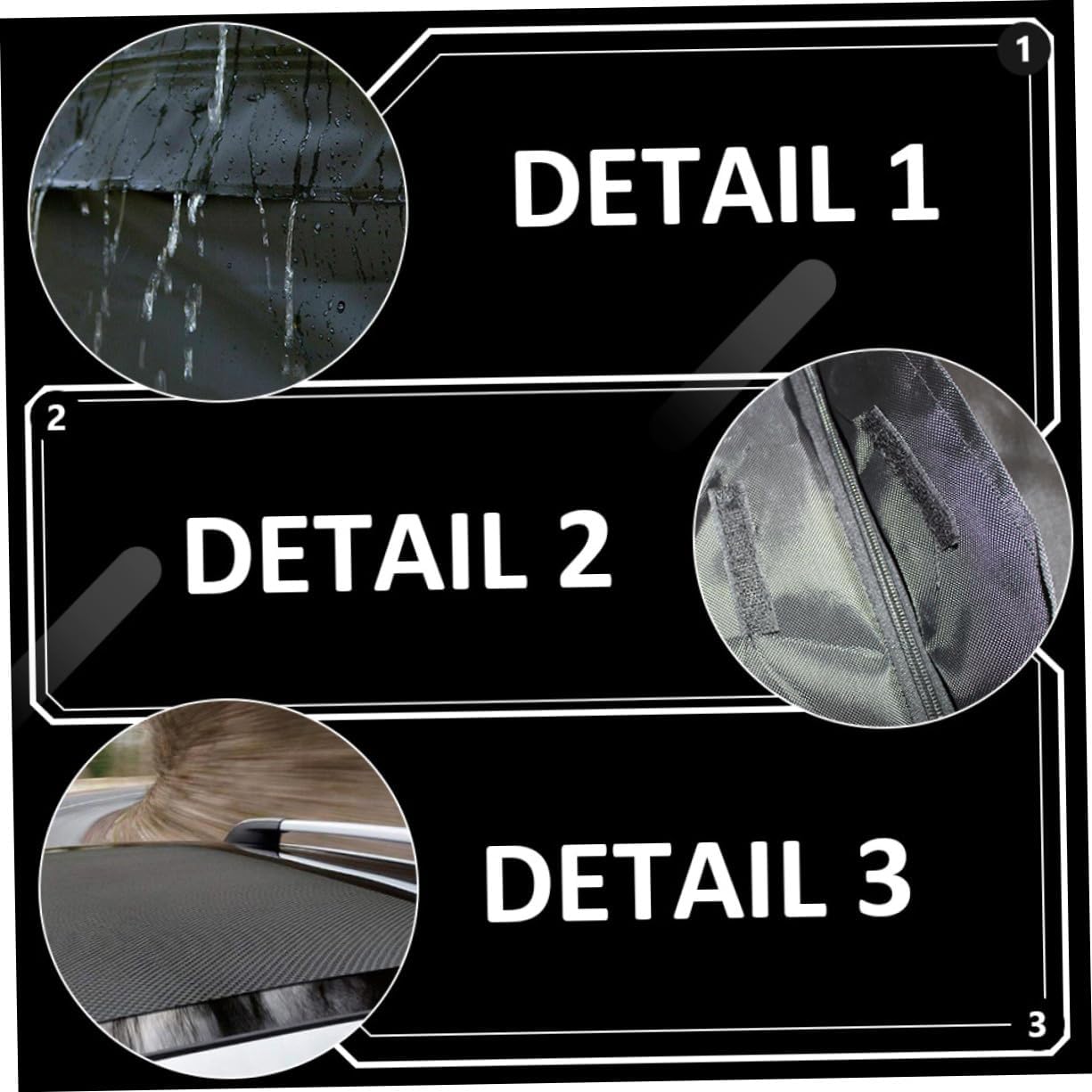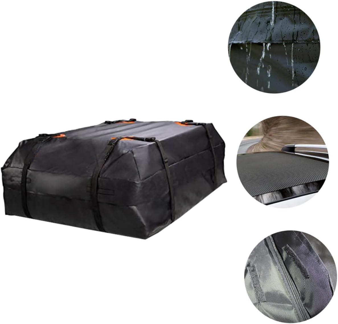 Package Include 1 roof bag Characteristics -Material: 420D Oxford cloth car roof carrier bag. -Size: About 112.00X87.00X44.00cm/44.02X34.19X17.29inch car rooftop cargo carrier bag. -Product Info:Waterproof luggage bag -Color: Black rooftop cargo carrier. -The structure is reasonable, easy to fix, stable and reliable, you can rest assured to use it for storage vehicle roof bag. -Waterproof and wear-resistant, it can protect your luggage from rain, gravel, snow, wind and the road waterproof rooftop cargo carrier bag. -It is made with superb craftsmanship, with simple design and practical functions, which can bring you of convenience waterproof car roof bag. -This roof bag has a large capacity and is large enough to hold most of the items you need Auto Rooftop Cargo Bag. -It is made of durable and practical 420D Oxford cloth material, which has a very good texture and will not be easily damaged car roof rack carrier.Goods InformationVehicle Cargo Roof Bag Are you looking for a professional, practical and roof luggage bag? Our products will be your good choice.roof travel bag Made of craftsmanship and 420D Oxford cloth material, it has excellent durability and practicality, waterproof and wear-resistant, safe and reliable, can store and protect your luggage, and will serve you well