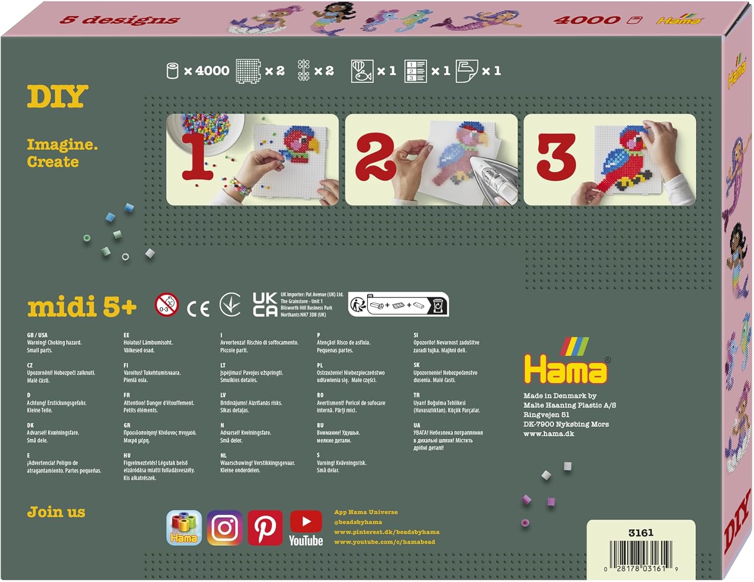 | Item Type Name | Hama Beads 3161 iron-on beads mermaids, gift pack of approx. 4,000 Midi Beads, 2 Pegboards to Stick Together, Motif Template, Ironing Paper, for Children Aged 5 Years and Above |