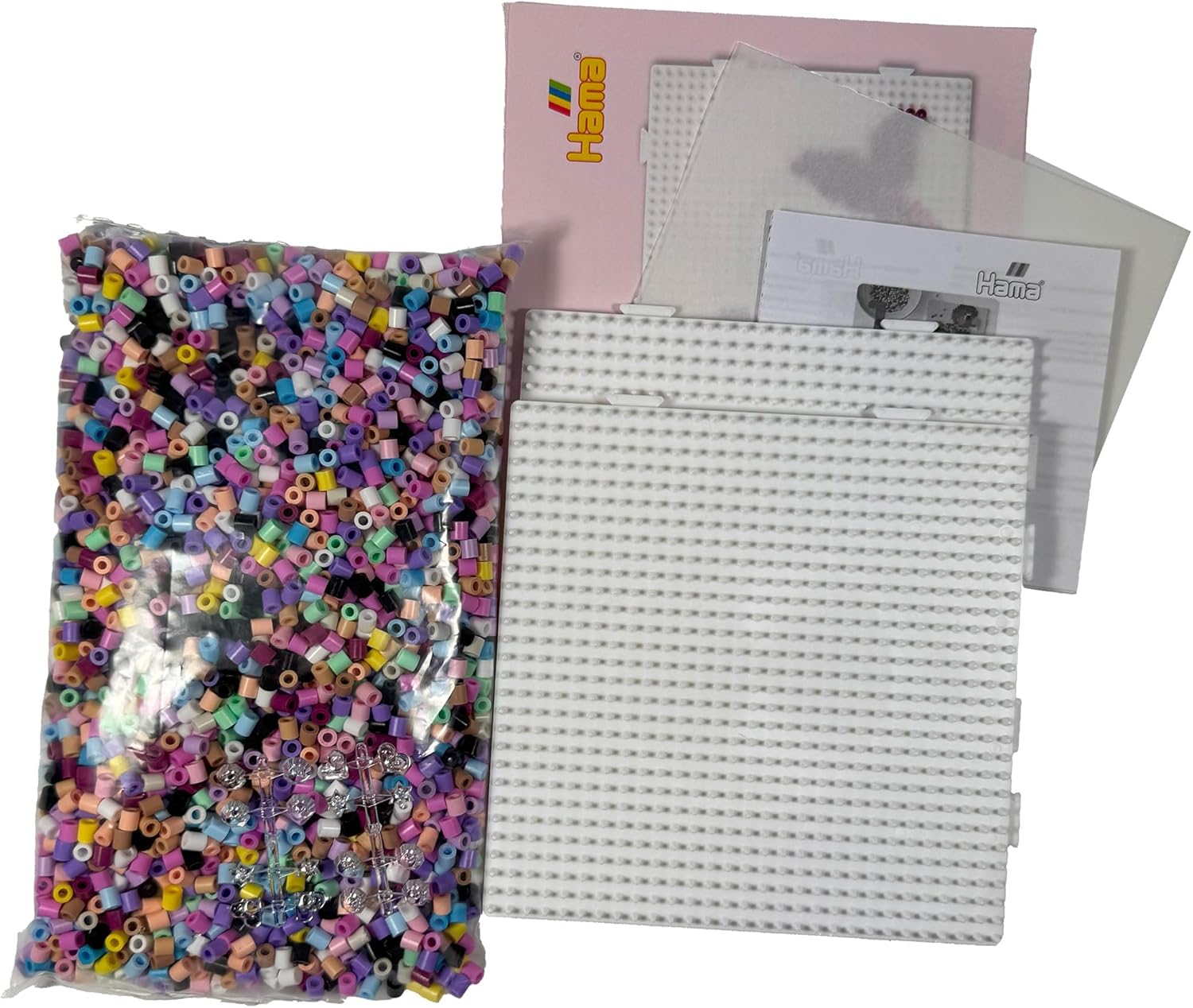 | Included Components | Gift pack with approx. 4,000 midi beads, 2 large square pegboards to clip together, motif template, ironing paper |