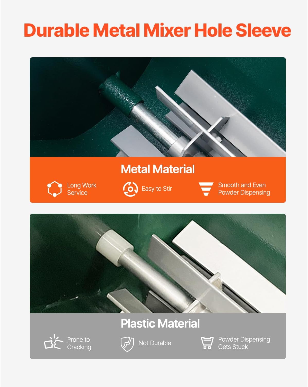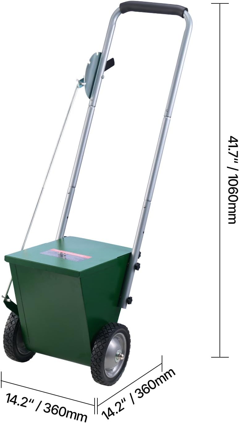 • Substantial Capacity and Line Options: This field chalker has a 25 lbs material capacity. With a 2-inch line width, it can mark approximately 2520 ft, and a 4-inch width allows for about 1260 ft. The top lid keeps the powder dry and ready for use.