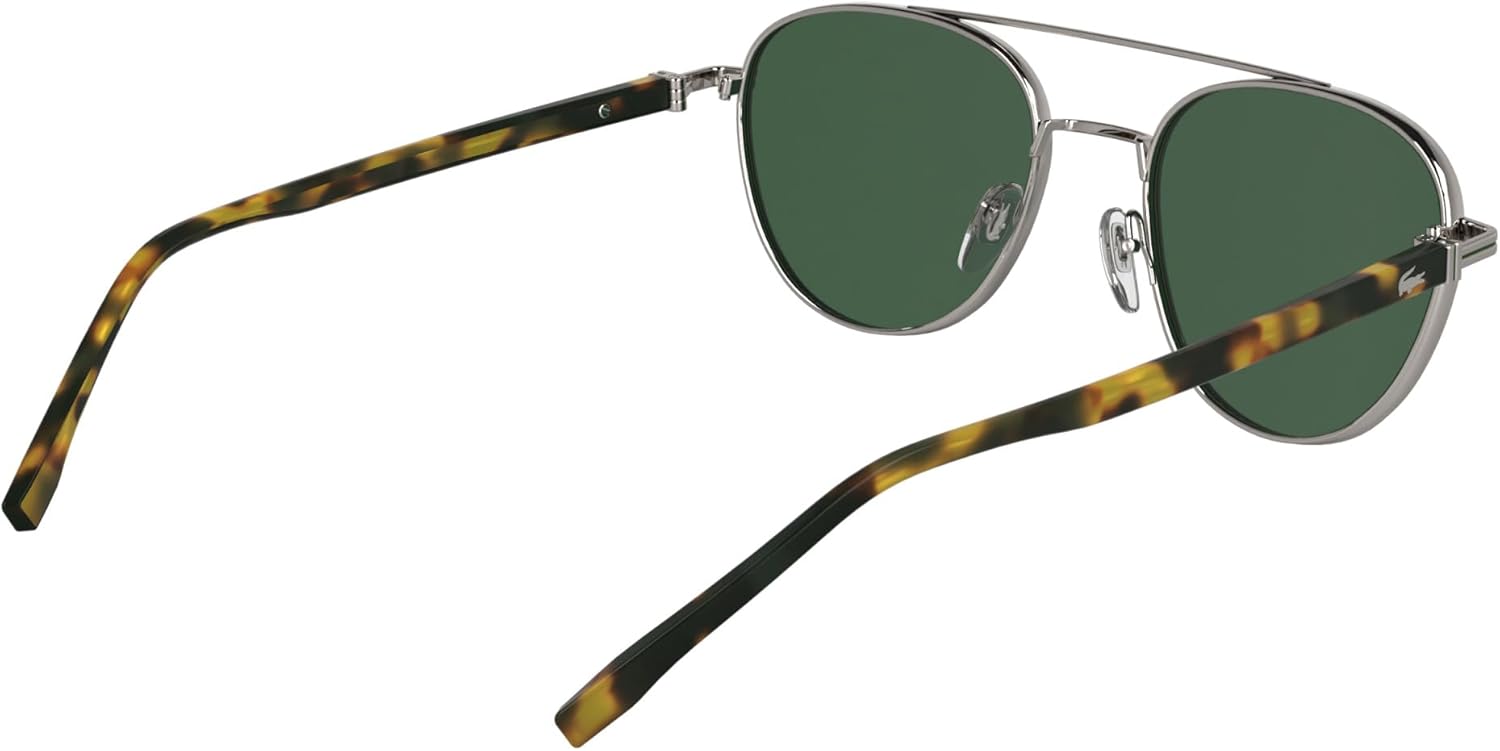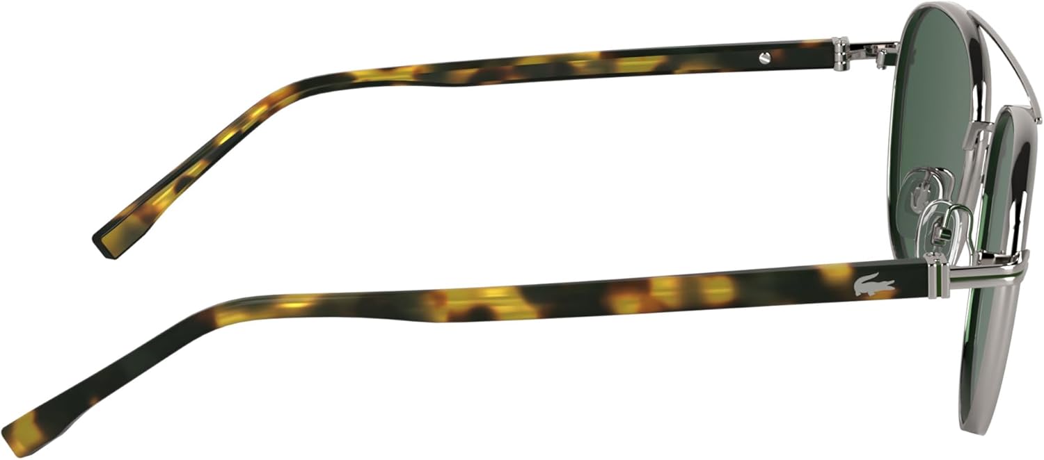 Timeless and refined, this style combines a metal front with acetate temples, enhanced by the iconic crocodile logo and green enamel details. Perfect for the Lacoste man seeking a casual yet classy accessory.