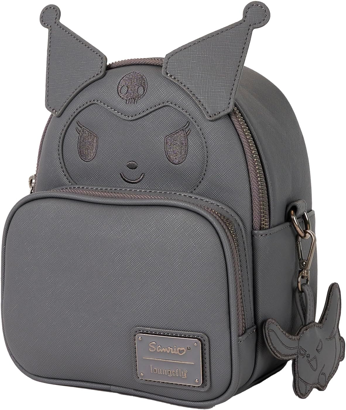 Feeling devilish, but in a browse-the-stationery-store kind of way? Take along this fierce but fun Kuromi convertible mini backpack. Dark textured faux leather makes this accessory an elegant stand-out. Appliques of her jester hat points stick up over the top in characteristic style, and her skull logo is embroidered in black. Baku also tags along as a faux leather charm. Pack just what you need for a day with friends, sharing smiles wherever you go.
