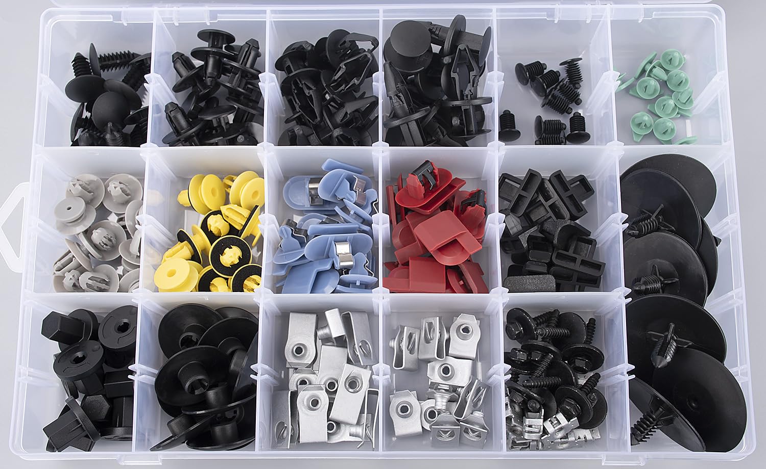 1 🌴 OEM#1605396 Black Nylon Radiator Yoke, Fender & Bumper Shield Retainer Top Head Diameter: 18mm Stem Length: 20mm Stem Diameter: 7.8mm 2 🌴 OEM#11612035 Black Nylon Front Fender & Body Side Liner Push-Type Retainer Head Diameter: 20mm, Stem Length: 12mm Fits into 8.5mm Hole 3 🌴 OEM#11589290 Black Nylon Air Inlet Grille, Bumper Fascia & Front Brake Caliper Cooling Duct Push-Type Retainer Head Diameter: 18mm, Stem Length: 20mm Panel Range: 4.5mm - 7.0mm Fits into 6.5mm Hole 4 🌴 OEM#11589293 Black Nylon Cowl Vent & Fender Push-Type Retainer Head Diameter: 20mm, Stem Length: 22mm Panel Range: 4.5mm - 7.0mm Fits into 8.5mm Hole 5 🌴 OEM#20699808 Black Nylon Door Weatherstrip Retainer Top Head Diameter: 10mm Stem Length: 12mm, Stem Diameter: 6.2mm 6 🌴 OEM#11611664 Green Nylon Door Weatherstrip Retianer Top Head Size: 6.5mm x 14mm Bottom Head Diameter: 10mm Stem Size: 4.7mm x 7mm Overall Height: 12.5mm Fits into 5mm Hole 7 🌴 OEM#11547574 Gray Nylon Door Trim Panel Retainer Top Head Diameter: 13mm Stem Length: 14.8mm Stem Diameter: 9mm 8 🌴 OEM#11547577 Yellow Nylon Door Trim Panel Retainer Top Head Diameter: 15mm Bottom Head Diameter: 17mm Stem Diameter: 9mm Stem Length: 14mm 9 🌴 OEM#24405740 Blue Nylon Windshield Pillar, Interior & Trunk Trim Moulding Clip with Metal Reinforcement Top Head Size: 17mm x 20mm Bottom Head Size: 14mm x 28mm Stem Length: 11mm 10 🌴 OEM#11547026 Red Nylon Interior Trim & Windshield Garnish Moulding Clip with Metal Reinforcement Top Head Size: 17mm x 24mm Bottom Head Size: 14mm x 28mm Stem Length: 10mm 11 🌴 OEM#11547341 Black Nylon Bumper Moulding Clip Head Size: 11.5mm x 21mm Stem Length: 11mm Overall Height: 17mm 12 🌴 OEM#11612034 Black Nylon Wheelhouse Liner Nut Thread Size: M4.2 (#8) Flange O.D.: 20mm Hex Size: 10mm Height: 15.5mm 13 🌴 OEM#94530387 Black Nylon Wheel House Liner Retainer Head Diameter: 30mm, Stem Diameter: 10mm Stem Length: 8mm, Overall Height: 10mm, Fits 5mm Stud 14 🌴 OEM#11515638 Zinc Organic Locking Thread Metric Extruded U-Nut Screw Size: M4.2-1.41 (#8) Panel Range: .65mm-3.80mm (.025”-.150”) Center of Hole to Edge: 15mm 15 🌴 OEM#11513599 Zinc Organic Locking Thread Screw Size: M4.2-1.41 (#8) Panel Range: .65mm-3.8mm (.025”-.150”) Center of Hole to Edge: 9.5mm (3/8”) 16 🌴 OEM#11611523 Zinc Fender Liner Nut Head Size: 16x6.5mm Screw Size: M4.2-1.41 Overall Height: 7mm 🌴 OEM#11570498 Black Zinc M4.2-1.41 x 20mm Hex Head Tapping Screw Hex: 7mm Washer O.D.: 17mm 17 🌴 OEM#20064875 Black Nylon Hood Insulation Retainer Top Head Diameter: 41.5mm Stem Length:19mm Stem Diameter: 7.6mm