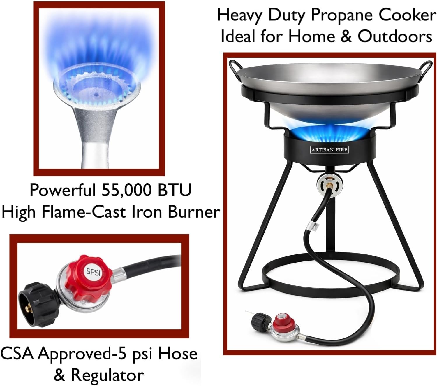 | Included Components | 24-inch Tall Propane Cooker, 18-inch Steel Wok, Wooden Utensils |