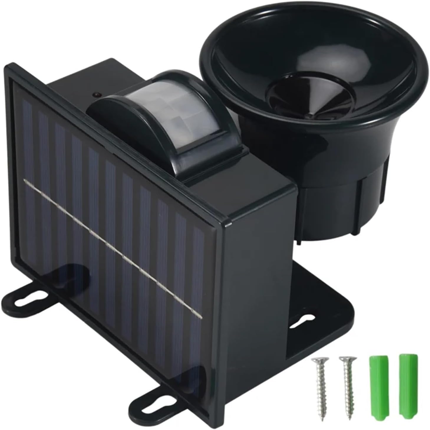 Colour: Dark blueMaterial: PlasticSize :13 x16x9cm3x AA rechargeable 800mAh (inclusive)Power cord: DC 4.5V 200mA (not includedPanel: 6V 50mAWorking current: Less than 180maStandby current: Less than 2maOperation duration: 9 to 11 secondssensor activation: less than 15 feet with 100 degrees of curvature.Ultrasonic frequency: 15KHz-25KHz (adjustable)The package includes1x Bird 2 x screw2 x pinNoteChoose an outdoor location with plenty of direct sunlight so that the solar panels can receive at least 8 hours of sunlight every day. It is not recommended to use it in a dark place as it may fail to charge the and reduce the capacity of the rechargeable 2. After fully charging the solar outdoor under direct sunlight for one day, the switch can be set to the "On" position.Only the above packaging contents are included. Other products are not included.Note: Lighting and different displays may cause the color of the items in the picture to be slightly different from the actual ones. The allowable measurement error is +/- 1-3cm.