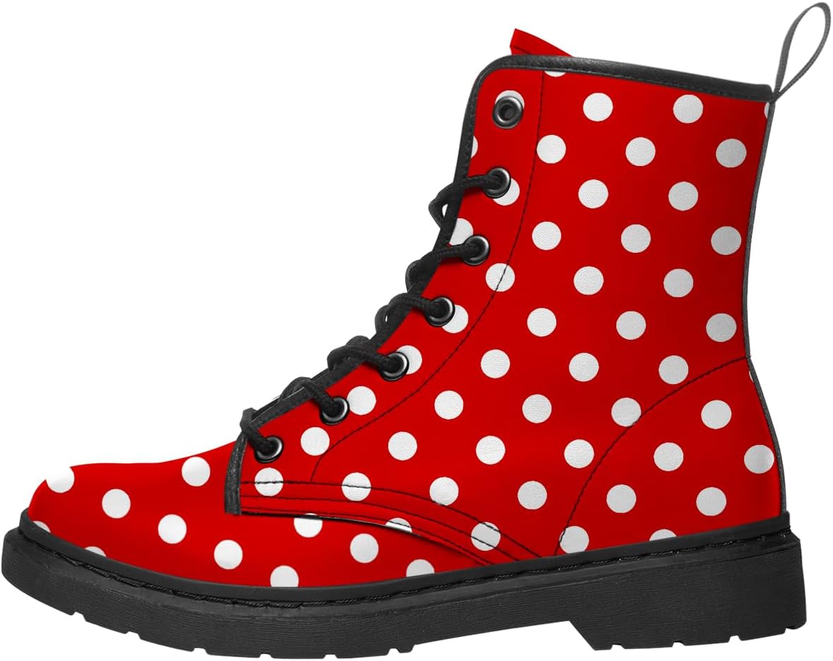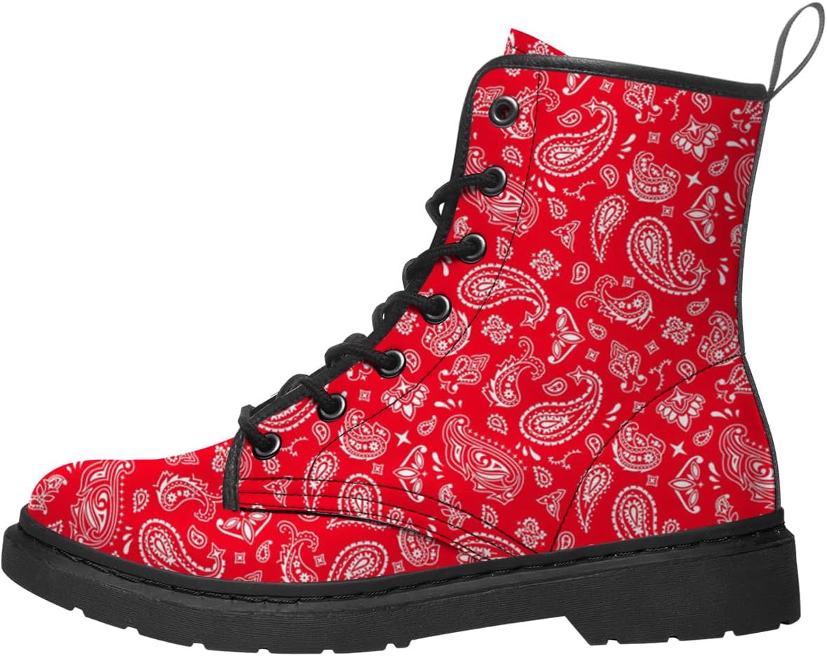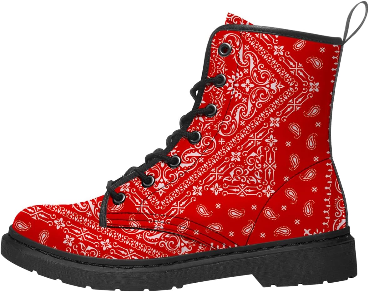 Experience comfort and style with our 3D print graphic boots.Designed with innovative,comfortable materials for a softer feel and all-day wear,these womens boots combine fashion with function.Red combat boots have multiple styles for you to choose from,giving you fashion and charm.Boots Feature:Waterproof Synthetic LeatherHeel Height: 1.3 inchesToe: Round ToeClosure: Lace-up front with metal eyeletsBoots Height Map: Mid Calf BootsGender: Women,Men,YouthFour seasons trend items-spring,summer,autumn,winter.Midsole:Classic stitching at midsoleInsole: Soft insoleOutsole: Anti-Slip Rubber OutsoleOccasion: For daily walks,work,hiking,camping,across the rugged scenery outsideFashion Boots Size:3 Men/4.5 Women = EU 35 = 8.94 inch3.5 Men/5 Women = EU 35.5 = 9.09 inch4 Men/5.5 Women = EU 36 = 9.25 inch4.5 Men/6 Women = EU 36.5 = 9.41 inch5 Men/6.5 Women = EU 37 = 9.61 inch5.5 Men/7 Women = EU 38 = 9.76 inch6 Men/7.5 Women = EU 39 = 9.92 inch6.5 Men/8 Women = EU 39.5 = 10.12 inch7 Men/8.5 Women = EU 40 = 10.28 inch7.5 Men/9 Women = EU 40.5 = 10.43 inch8 Men/9.5 Women = EU 41 = 10.63 inch8.5 Men/10 Women = EU 42 = 10.79 inch9 Men/10.5 Women = EU 42.5 = 10.98 inch9.5 Men/11 Women = EU 43 = 11.10 inch10 Men/11.5 Women = EU 44 = 11.29 inch10.5 Men/12 Women = EU 44.5 = 11.49 inch11 Men/12.5 Women = EU 45 = 11.61 inch11.5 Men/13 Women = EU 45.5 = 11.77 inch12 Men/13.5 Women = EU 46 = 11.97 inch13 Men/14 Women = EU 47= 12.13 inchSize Tips: True to size.Choose a half size smaller if you wear sneakers regularly-sneaker size 40 fits boots 39.5/39.