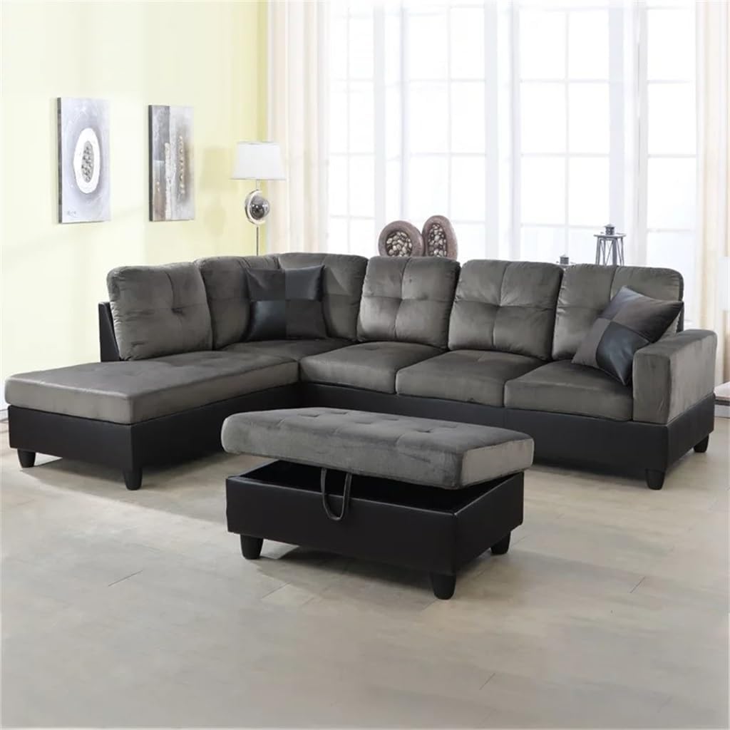 The Flannel And PVC Couch Sofa Set cushion uses soft Flannel And PVC, and the cushion uses thick foam. The Flannel Sectional Sofa Set has elegant appearance and excellent comfort. The Flannel And PVC Couch Sofa Set cushion is made of highly resilient foam, which provides a comfortable super stretch structure, bringing extra comfort and longevity.The L-Shaped Sofa is constructed with frames, which are sturdy and ; Every process of making a sofa emphasizes perfection and is almost demanding.This L-Shaped Sofa blends classic and rural elements, while the Flannel And PVC Couch Sofa Set brings an elegant to your living room and perfectly blends with any home decor.The Flannel Sectional Sofa Set features a thick seat cushion and fluffy cushions to help you relax as much as possible. The Flannel Section Sofa Set is for living rooms, conference rooms, hotels, bedrooms, offices, home theaters, and other placesSpecification.Main Color: TaupeMain Material: Flannel And PVCFiller: FoamA: 74.5" x 32" x 35"(L x W x H)B: 71.5" x32" x35"(L x W x H)Item Weight: 201.25 lbsPackage Included:Sofa *1, Without Ottoman(no other presentation items included).Notice:1. Due to manual measurement, please allow 2-3% error, before you bid, please make sure you don't mind.2. The color may vary due to different displays, please refer to the actual product.