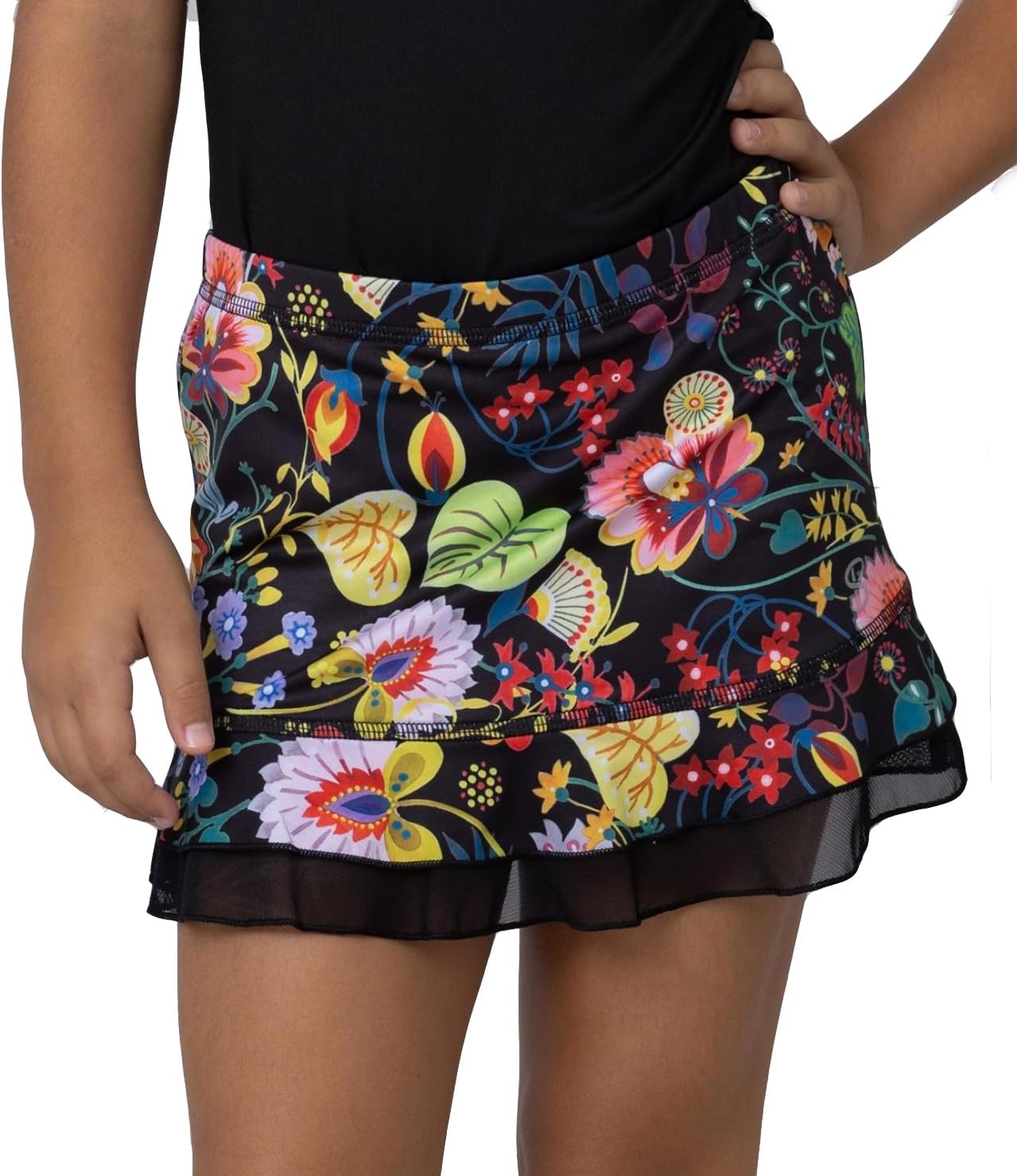 Girls can serve up aces in the Sofibella Ruffle Tennis Skirt. This skirt is made with the Sofibella Sofi-premier fabric that is breathable and has a featherweight feel and is soft to the touch. This comfort ruffle skort can be combined with other Sofibella tennis essential pieces or fashion collections. Material: 86% Nylon / 14% Lycra 11in Length UPF 50 Pilling Resistant Quick Drying - Two Way Stretch Model Number: 4614