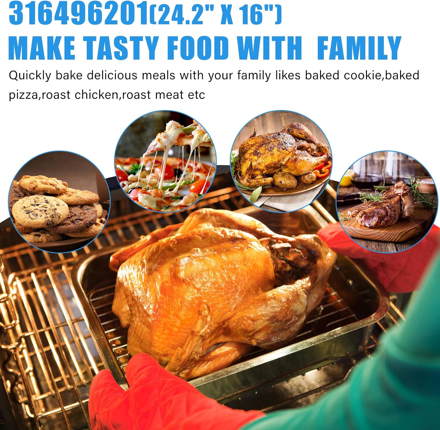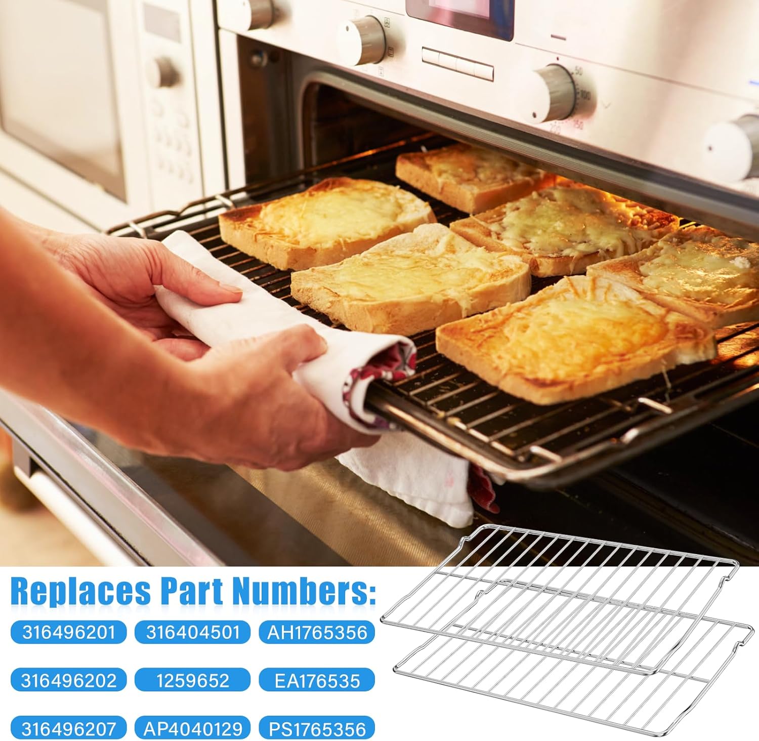 | Material | The 316496201 Range Oven Rack for frigidaire gas oven racks is made of standard food-grade superior 304 stainless steel, which is durable and rustproof. These steel stove rack thick grid can bear the weight better and is not easy to break. |