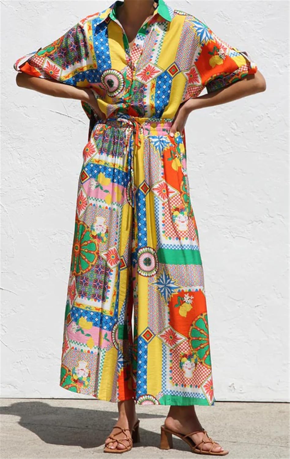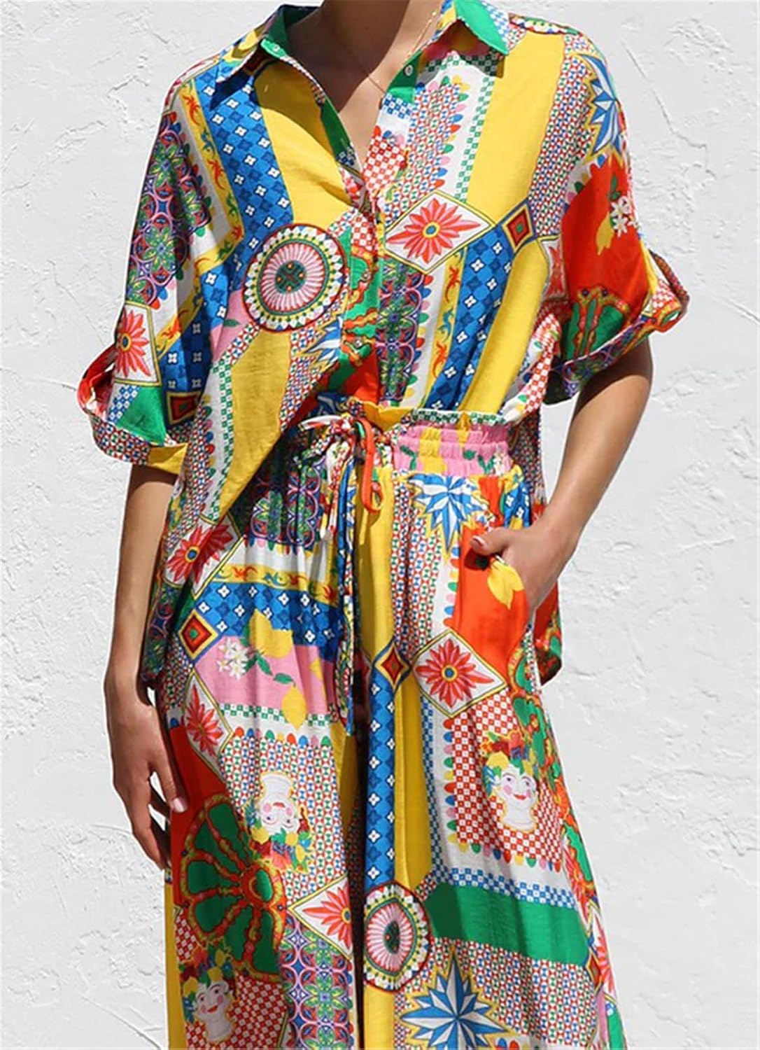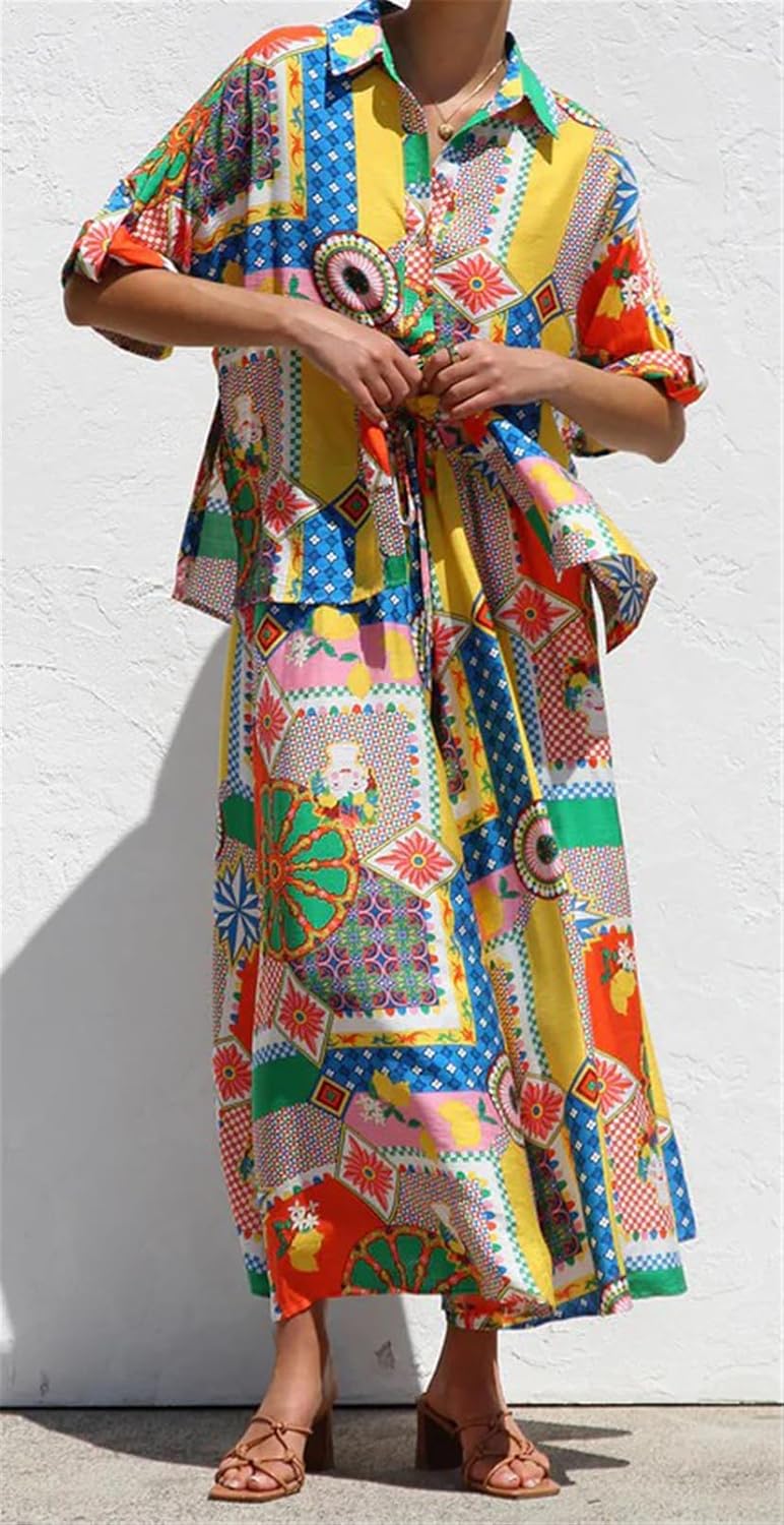 Women's 2 Pieces Printed Blouse Shirts Tops Bodycon A-Line Skirts Sexy Nightclub Party Outfits Beach Vacation Dress Set