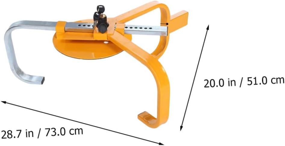 Package List 1 Characteristics -Size: About 73.00X51.00X32.00cm / 28.69X20.04X12.58inch car wheel chock lock. -Material: Steel car anti-theft lock. -Color: Yellow tire anti-theft lock. -Product Info:Wheel anti-theft lock -The security tire clamp securely wraps around your car wheel car wheel clamp. -With the anti-theft lock, car unattended supervision can be realized car safety lock. -Wheel chock lock fits most vehicles, simple and practical to use car parking lock. -This -fork parking lock greatly improves anti-theft performance car wheel lock. -The lock position has waterproof cover to prevent dirt and rust creative car lock.Goods Informationcar anti-theft lock This car wheel lock is a perfect anti-theft device that will completely immobilize a wheel from rotating or turning.creative car lock Thus do not hesitate to take it home!.durable security lock fork design can prevent such as iron bars, greatly anti-theft